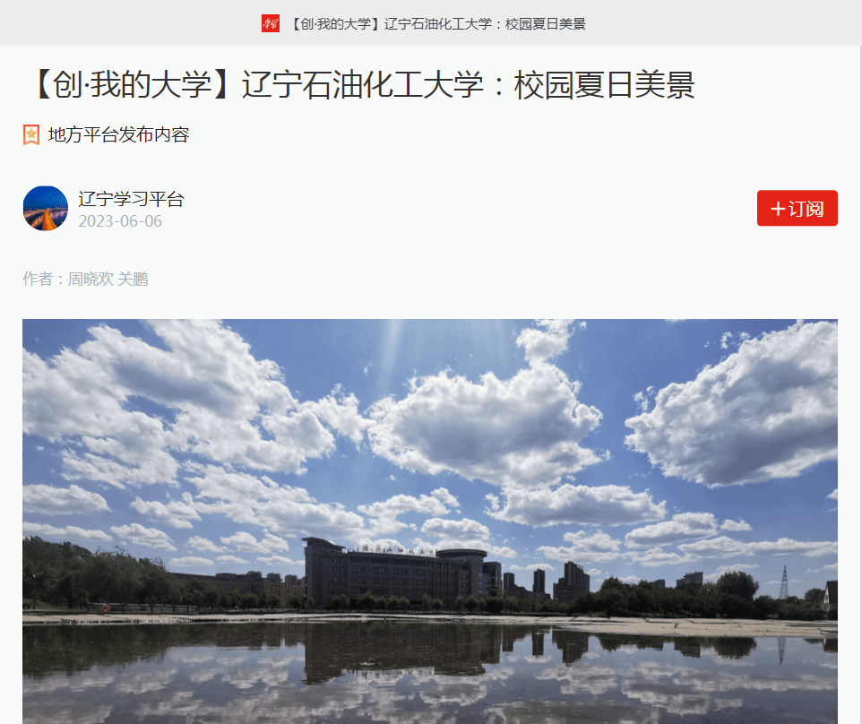 编者按:近日,学习强国辽宁学习平台、人民日报客户端·人民号等媒体平台对我校周晓欢、关鹏老师拍摄的校园夏景以图集形式进行了宣传报道。现将相关报道转载如下: