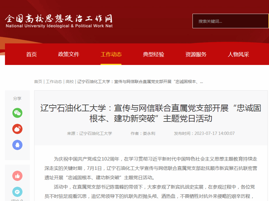 编者按:近日,全国高校思想政治工作网、辽宁日报·北国号等媒体平台对我校宣传与网信联合直属党支部开展“忠诚固根本、建功新突破”主题党日活动进行了宣传报道。现将相关报道转载如下: