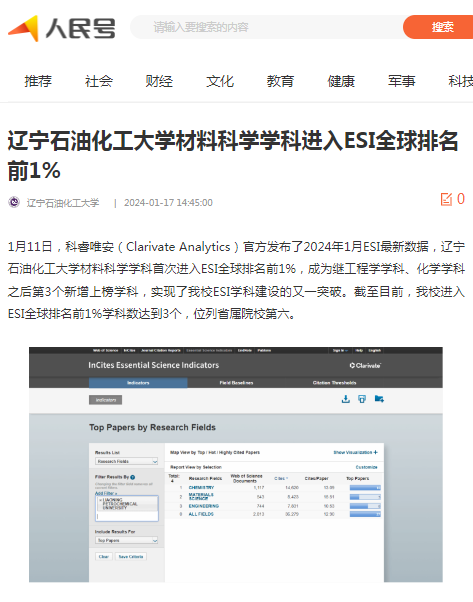 编者按:1月11日,科睿唯安(Clarivate Analytics)官方发布了2024年1月ESI最新数据,国产亚洲综合一区二区三区_亚洲欧美日韩中文天堂_尤物在线观看视频不卡无码_国产最新精品亚洲2025不卡_亚洲成Av人在线观看片水蜜桃材料科学学科首次进入ESI全球排名前1%,成为继工程学学科、化学学科之后第3个新增上榜学科,实现了我校ESI学科建设的又一突破。截至目前,我校进入ESI全球排名前1%学科数达到3个,位列省属院校第六。学习强国辽宁学习平台、辽宁日报·辽望号、人民日报客户端·人民号对此进行了宣传报道。现将相关报道转载如下: