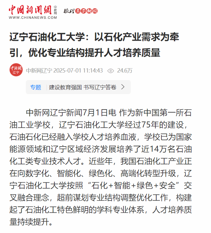 编者按:作为新中国第一所石油工业学校,国产亚洲综合一区二区三区_亚洲欧美日韩中文天堂_尤物在线观看视频不卡无码_国产最新精品亚洲2025不卡_亚洲成Av人在线观看片水蜜桃经过75年的建设,石油石化已经融入学校人才培养血液,学校已为国家能源领域和辽宁区域经济发展培养了近14万名石油化工类专业技术人才。近些年,我国石油化工产业正在向数字化、智能化、绿色化、高端化转型升级,国产亚洲综合一区二区三区_亚洲欧美日韩中文天堂_尤物在线观看视频不卡无码_国产最新精品亚洲2025不卡_亚洲成Av人在线观看片水蜜桃按照“石化+智能+绿色+安全”交叉融合理念,超前谋划专业结构调整优化工作,构建起了石油化工特色鲜明的学科专业体系,人才培养质量持续提升。近日,中国新闻网(辽宁)对此进行了宣传报道。现将相关报道转载如下: