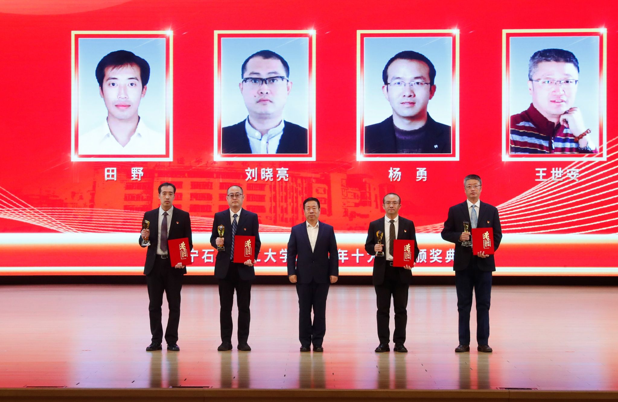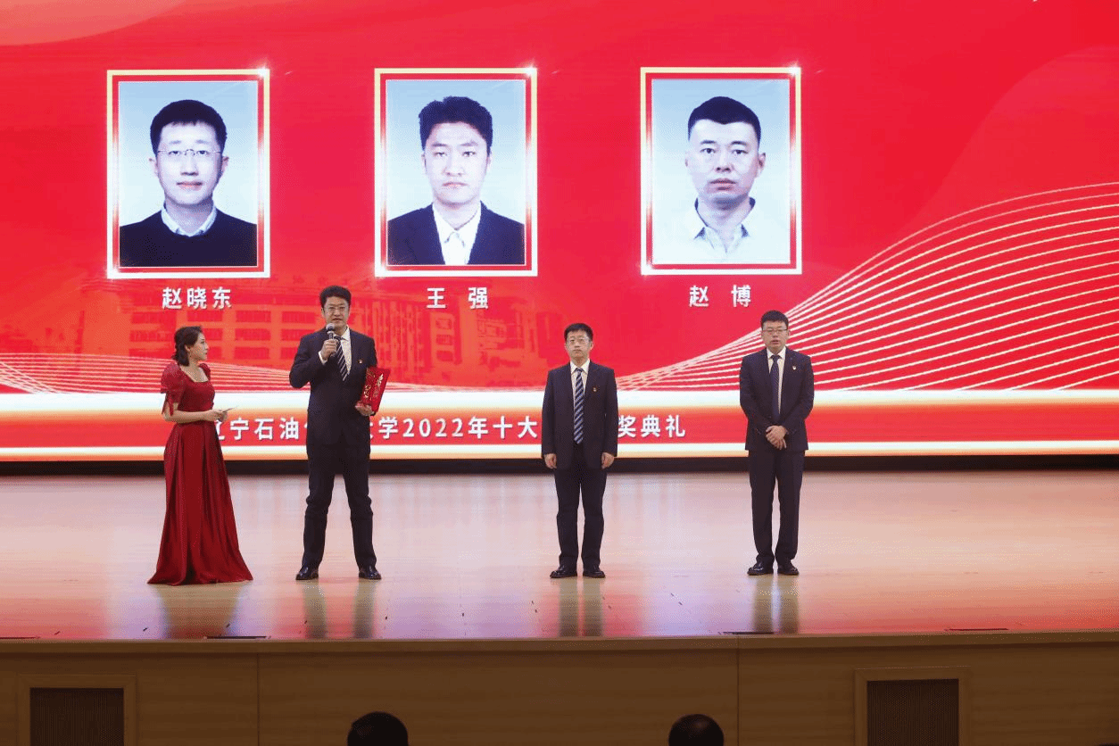 党委宣传部以学校2022年十大新闻为主线制作的宣传片为颁奖典礼开篇,深情回望辽石化大人写满汗水和收获的2022年。随后,专题片依次揭晓2022年度学校“十大新闻”。校领导登台为获奖者代表颁奖,以表彰和感谢他们为学校发展付出的艰辛努力、作出的突出贡献,勉励他们勇担新使命、奋进新征程。